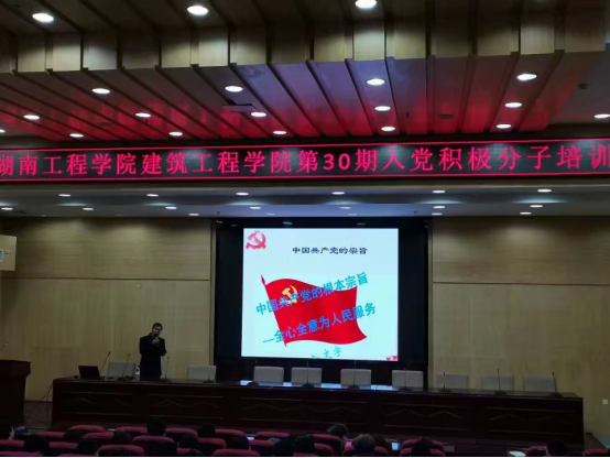 2021年4月10日上午8点,2138CC太阳集团建筑工程学院第30期入党积极分子培训于主校区第二报告厅正式开班。开班仪式上,党务办陈敬德宣读党校纪律,入党积极分子培训是入党的第一步,希望同学们珍惜学习机会,积极向党组织靠拢。