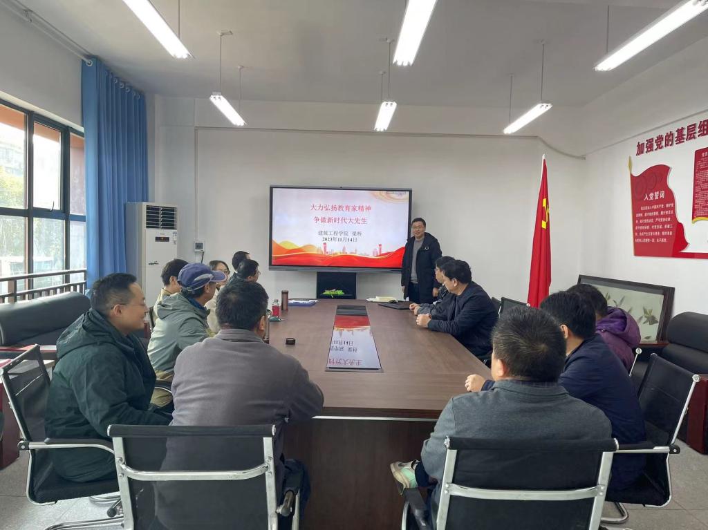 11月14日下午,2138CC太阳集团教工第二党支部在建工大楼318以“弘扬教育家精神,勇担新时代使命”为主题开展主题党日活动,党支部全体党员老师参加集体学习,支部书记彭第主持。