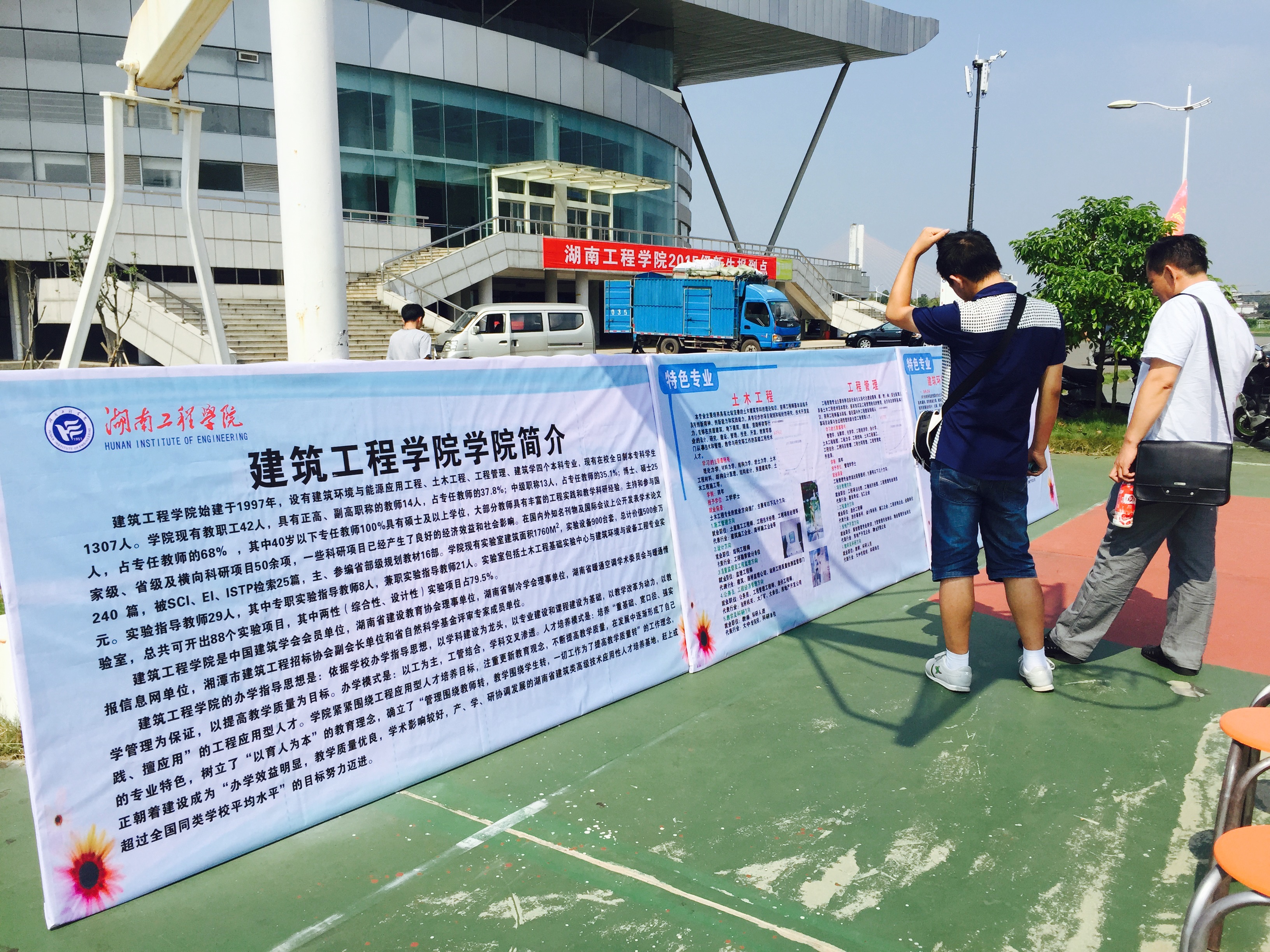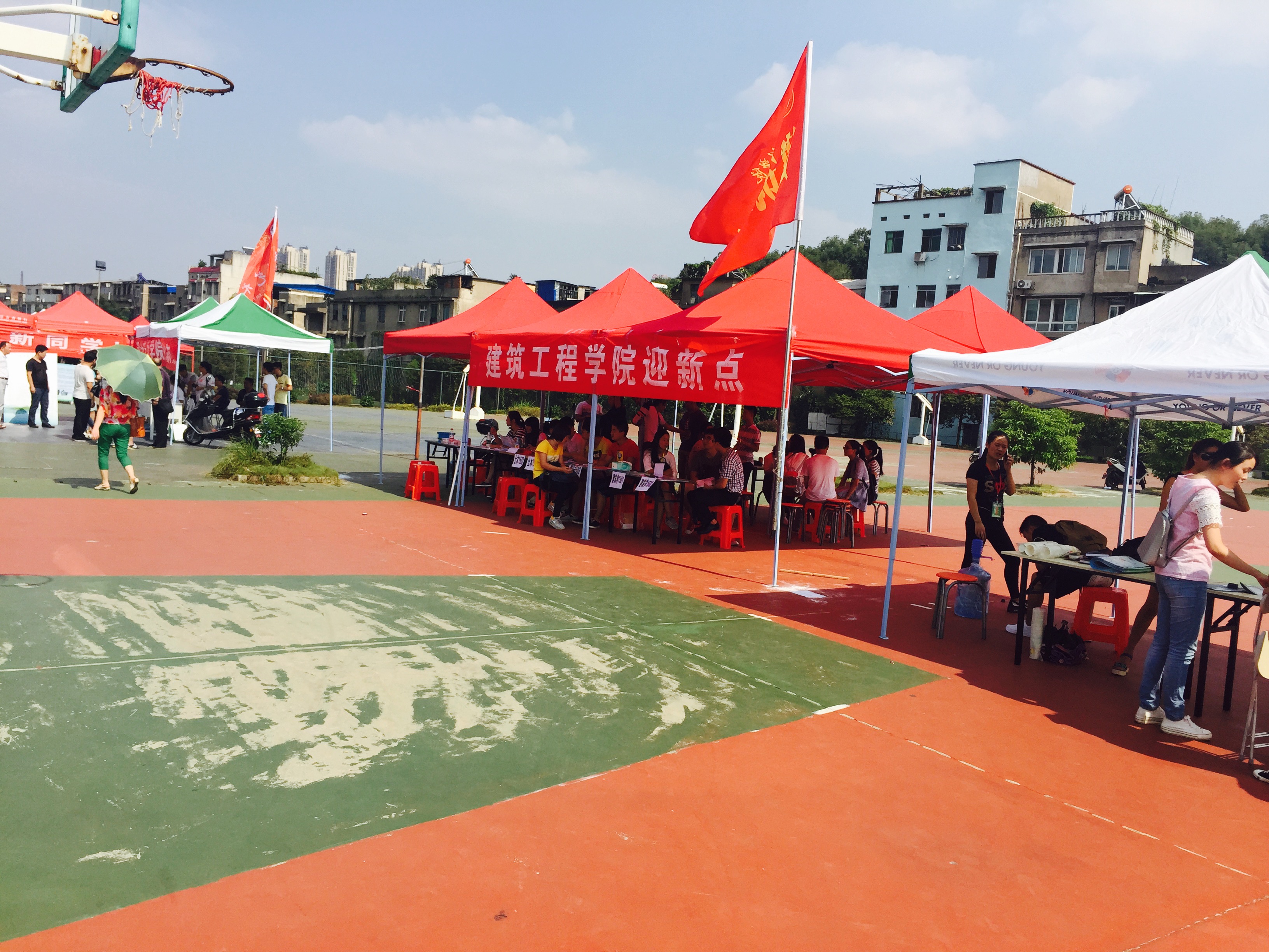 热情的微笑,真切的关怀,篮球场上阳光下到处晃动着迎新工作人员忙碌的身影。