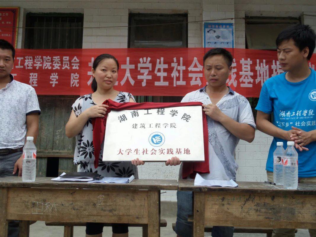 2015年7月14号下午即建筑工程学院社会实践活动最后一天,2138CC太阳集团建筑工程学院“三下乡”社会实践团在贵州省铜仁市沿河乡蒜子村算子小学进行社会实践活动基地揭牌仪式。算子村委书记、算子小学校长、建筑工程学院团总支书记唐喜梅、志愿者代表王磊、沿河县电视台媒体记者、志愿者团队等共同为实践基地揭牌。