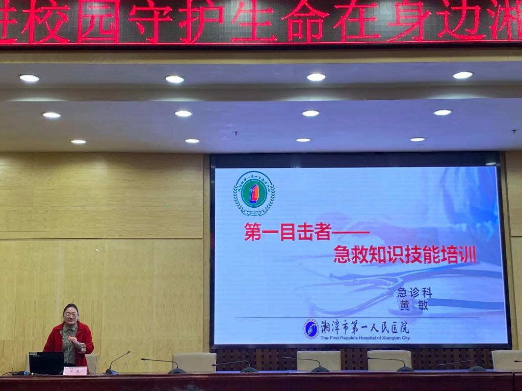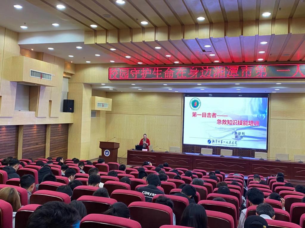 这次知识讲座由来自湘潭市第一人民医院的黄敏医生主讲。这次知识讲座的主要内容是“第一目击者”。“第一目击者”培训主要包括了三个步骤,心肺复苏、气道异物梗阻解除以及创伤救护。参加此次知识讲座的每个学生全程都在认真听讲、积极参与。这次讲座使同学们受益匪浅,并让同学们更加清楚地认识到了当生命处于急需被挽救的关键时刻,也许你的援手就能点燃一份希望。