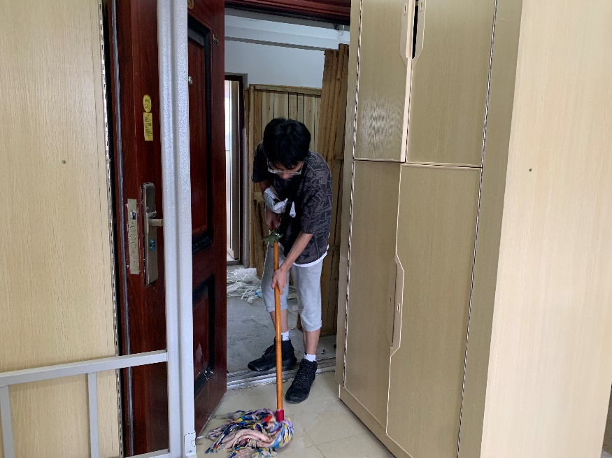在书记的带领下,同学们拿着各种清扫工具来到了滨江11栋宿舍楼门口集合。为保证清扫工作高效有序开展,每个宿舍由两位成员打扫,每两个宿舍设置一个组长,负责组员分工以及工作验收。到达指定宿舍后,所有成员分工明确、密切配合,将宿舍的地面、桌面进行清洁。清扫过程中,志愿们打扫细致入微,从阳台到洗手间,从书桌到橱柜,对房间里的每一个细节之处都进行了仔细的打扫,并对地面、窗户进行清洁。在所有志愿者的共同努力下,全体新生宿舍面貌焕然一新。随后,志愿者们让组长对其打扫成果进行验收,确保环境干净整洁后,有序离场,并对门窗进行关锁,确保宿舍安全。