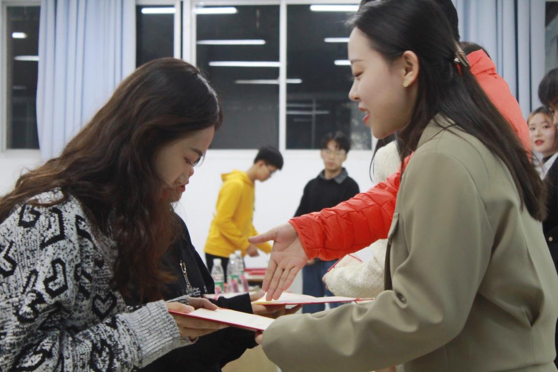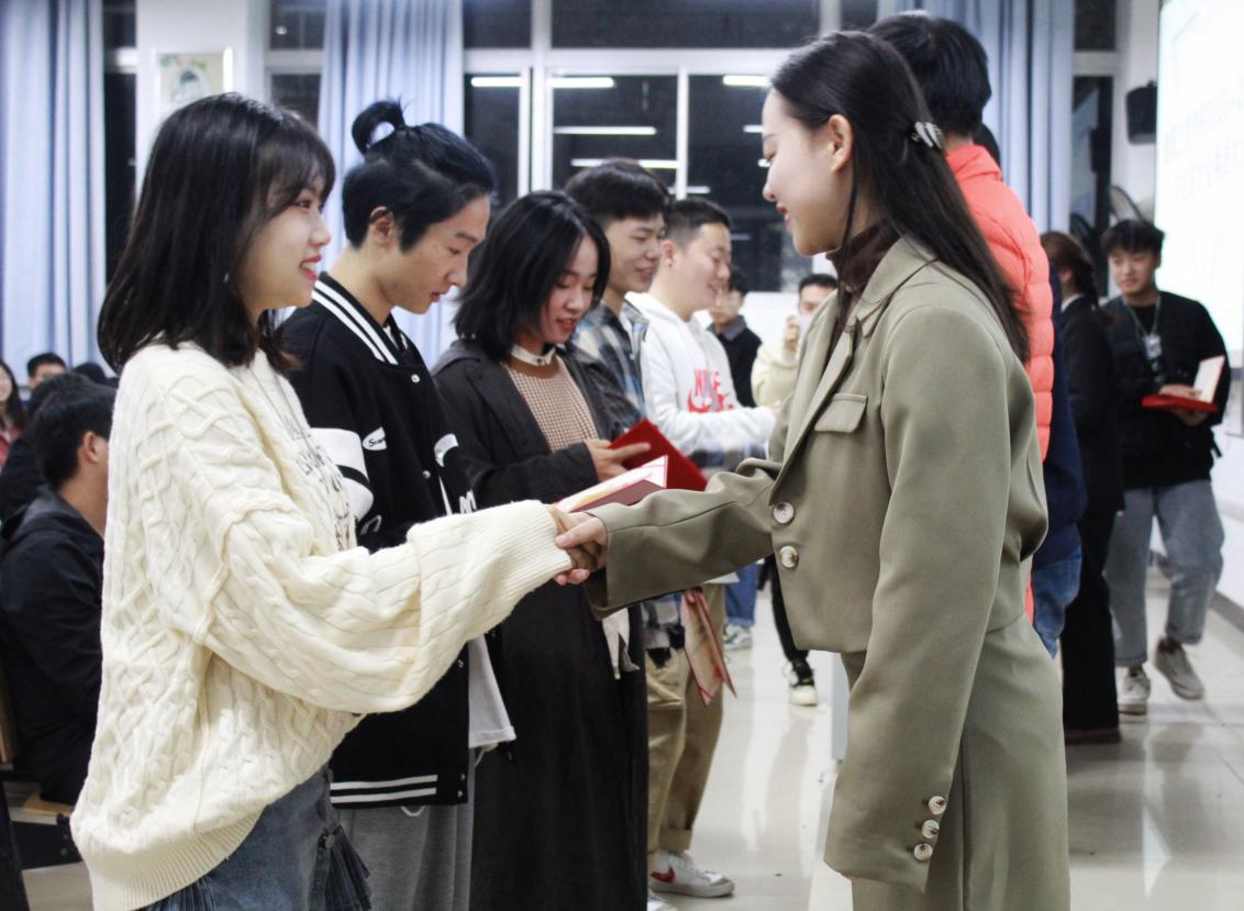 随后老师们上一届学生联合组织干部们颁发聘书,建筑工程学院2021—2022届团总支副书记唐天舒带领本届学生联合组织全体成员进行宣誓,所有成员目光坚定,举起的右手散发着无形的力量,仿佛用无声的行动来表明自己的决心。