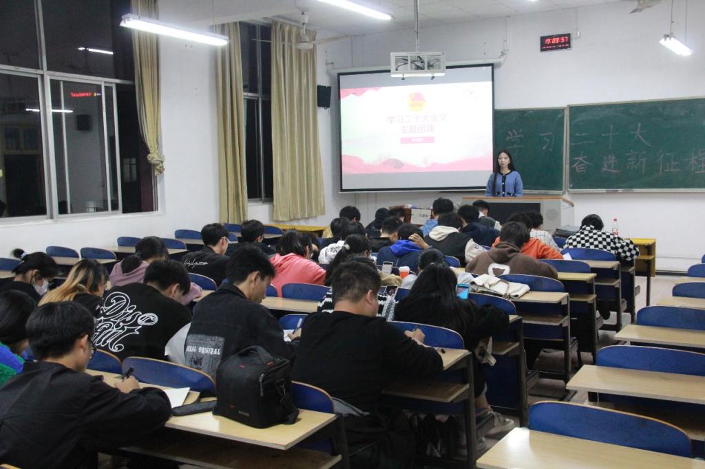 党的第二十次全国代表大会是一次高举旗帜、凝聚力量、团结奋进的大会,在党和国家发展进程中具有极其重大的历史意义。为深入学习贯彻党的二十大精神,在院党委的领导下学生联合组织于10月27日晚在红楼305开展了以“踔厉奋发迈向新征程”为主题的团课。此次团课由院团总支书记周洳帆主讲,学生联合组织全体干部参加。