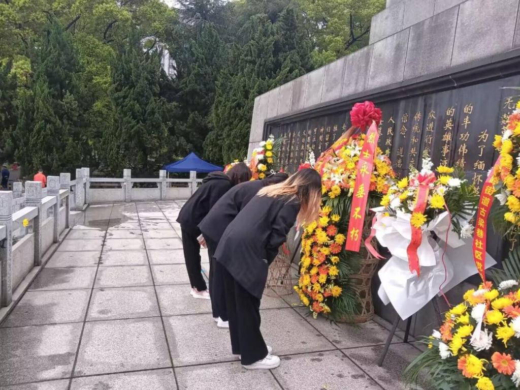 团课后,全体成员在烈士纪念碑前默哀。默哀后,大家围绕镌刻了1845名为国捐躯的英雄烈士墙,依次给先烈们敬献鲜花。在瞻仰纪念碑时,同学们自发地鞠躬表达对先辈们的敬畏。在纪念馆中参观的同学们仔细阅读先辈们的光辉事迹,感受他们高尚的精神境界。