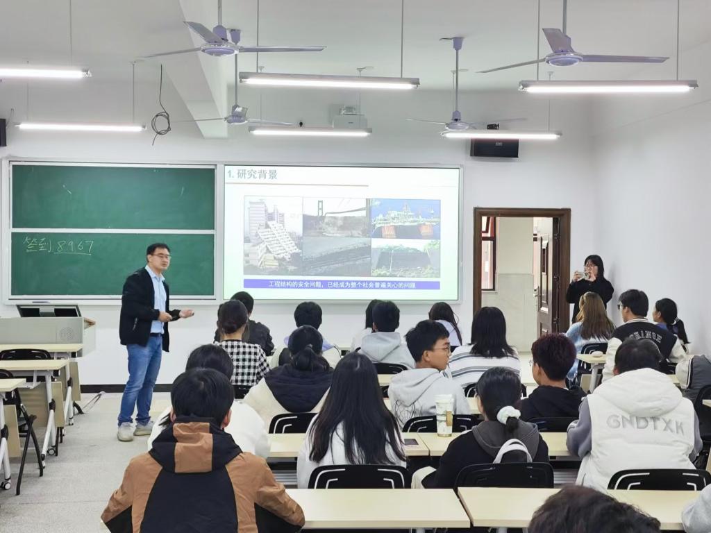 张龙文博士给学生们进行工程结构可靠度理论及其应用的学术讲解,让学生们触碰了最前沿的科技知识。