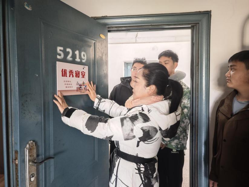 授牌仪式结束后,学院党委副书记罗卫前往寝室,为“优秀寝室”挂牌,进一步增强了活动的仪式感。
