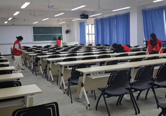 青年志愿者们积极响应号召,带着清洁工具准时集合,分工明确,迅速投入到清洁工作中。大家根据分配好的教室区域,有序地开始清扫活动。清扫地面、整理讲台、擦净黑板、摆放桌椅、清理书桌垃圾,经过清扫,教室环境焕然一新,用实际行动为全校师生营造一个干净、整洁、美观的教学环境。