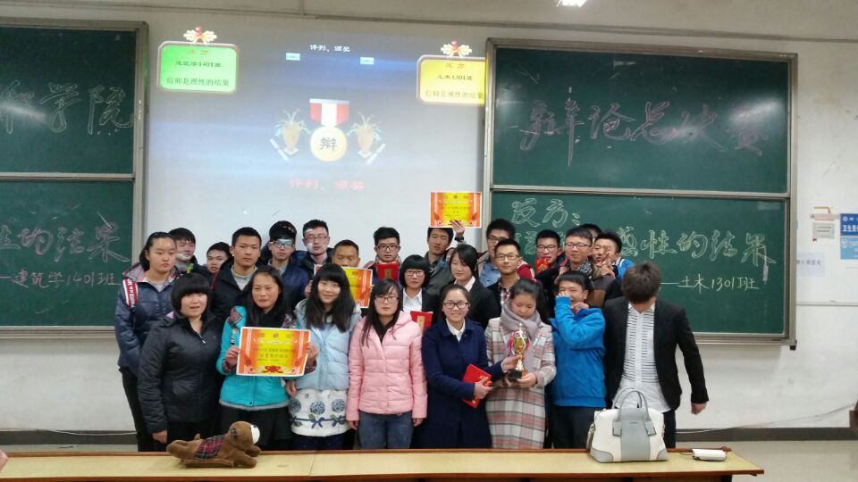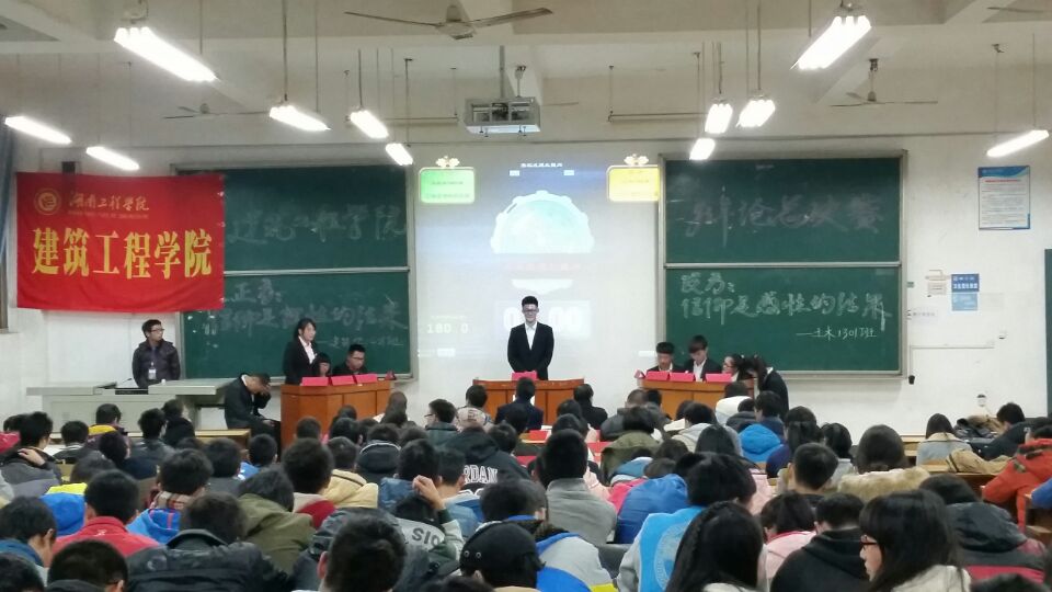 2014年12月23日晚7点在2138CC太阳集团新校区D栋101教室,建工学院2014年下学期班级辩论赛决赛在此展开。来自建筑学1401班和土木1301班的两支辩论队伍将就“信仰是理性的结果”与“信仰是感性的结果”的辩题进行了一番唇枪舌战的辩论。最后,所持观点为“信仰是的感性结果”的一方——土木1301略胜一筹,摘取了本场比赛的桂冠。终于,建筑工程学院2014年度辩论赛也随着土木1301班的获胜而落下了帷幕。