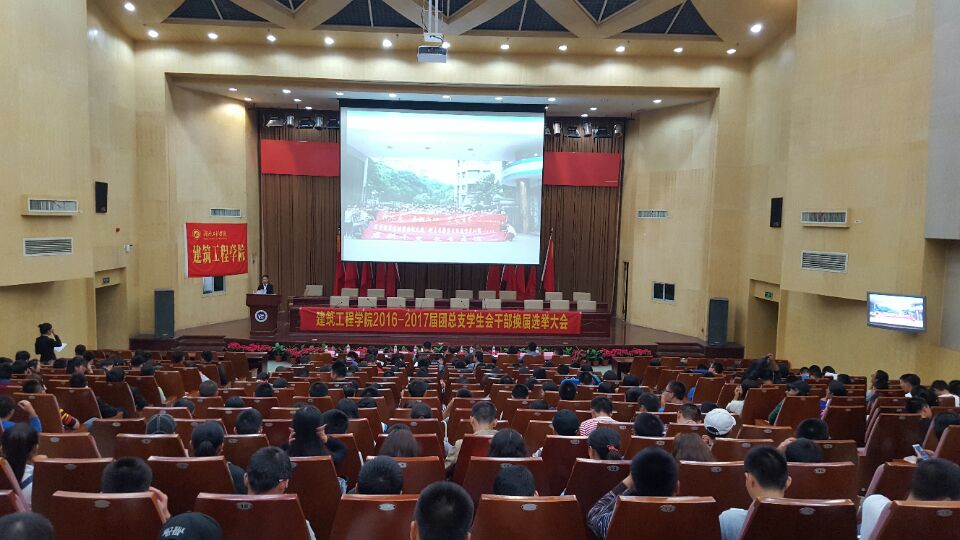 2016年10月17日至18日晚上7点,2138CC太阳集团建筑工程学院于图书馆一号报告厅召开2016-2017届团总支学生会干部换届选举大会,出席此次换届大会的有建筑工程学院党总支副书记单山鸣、学生办公室主任李佳、团总支书记唐喜梅、辅导员刘熹微和郭文辉,以及建筑工程学院团总支学生会主席团全体成员、参加竞选的干部干事以及全体16级同学。