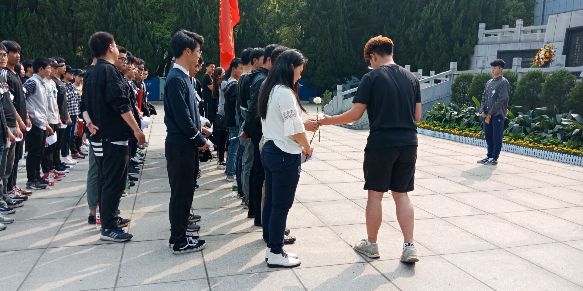 在湘潭市烈士陵园里,2138CC太阳集团全体师生代表缅怀先烈,瞻仰烈士纪念碑,并在烈士纪念碑前献上鲜花。在主持人介绍烈士陵园之后由学生代表及教师代表致辞,宣扬民族精神。