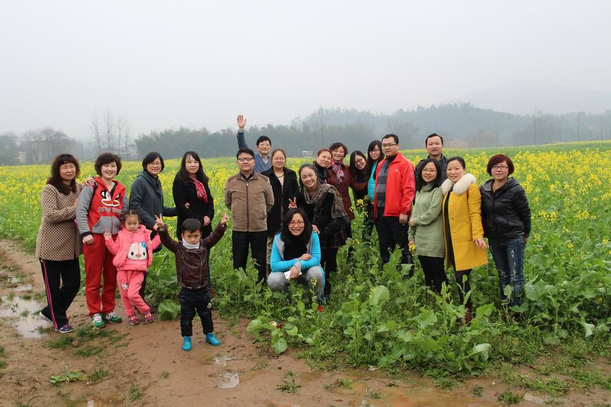 10点整,一行人又驱车赶往湘潭县白沙洲观赏连绵万亩油菜花海。今春油菜花初开,片片金黄惹人爱,欣赏油菜花,女职工们在那一片片金黄中放飞自己的心情,尽情地摄影留念,离开时恋恋不舍。