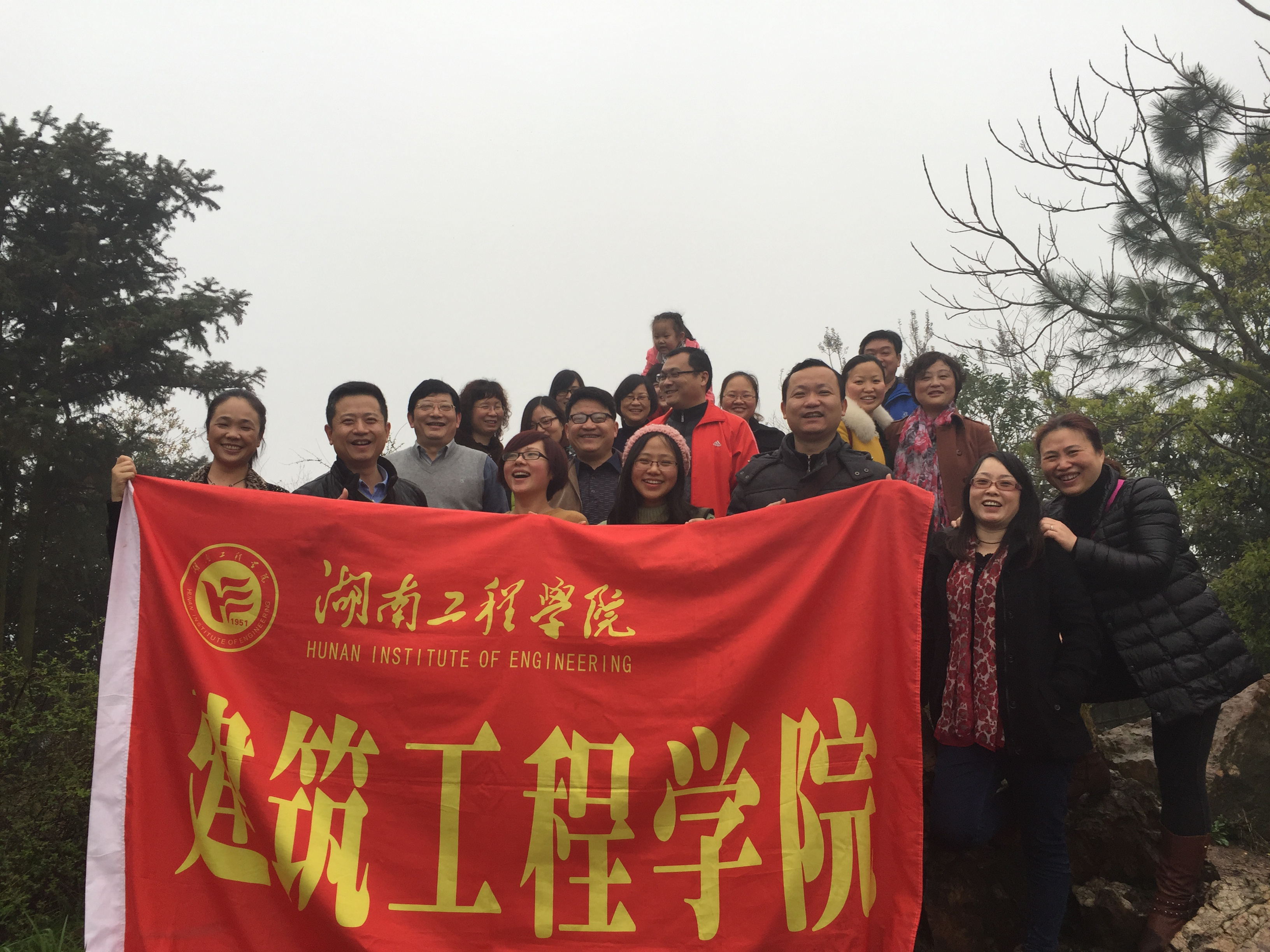315日上午,细雨绵绵,轻风抚面,建筑工程学院领导及女教职工一行20多人来到湘潭金霞山。金霞山海拔151米,上延岳秀,中扼湘流,下瞰潭城,层峦叠嶂,挺拔威仪,山上奇石古木,建有霞栖庵、龙兴庵,景色迷人,是湘潭四大名山之一。大家从主入口广场进入,沐浴着微风细雨,呼吸着新鲜的空气,沿着林荫小道慢慢行走,令人流连忘返。