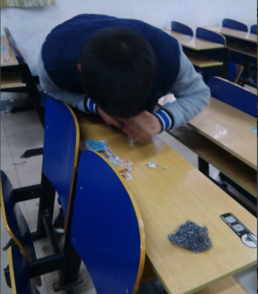 下午1点,在红楼里的一个特殊的教室里展开了清除教室“牛皮癣”的活动,因为那里随处可见小广告的贴纸,给人一种强烈的反感。志愿者共分为两组,整个过程中大家分工明确,每个人忙得不可开交,虽然劳累又繁琐,但在大家积极配合下,一切井然有序地进行,没有一个人偷懒。最后出色完成任务,让教室焕然一新,显得更宽敞明亮,令人感到舒适。