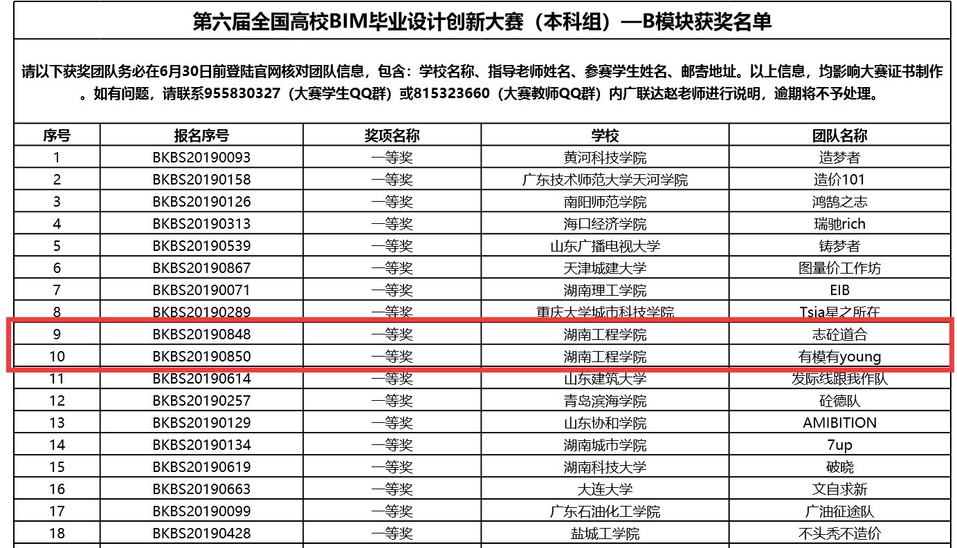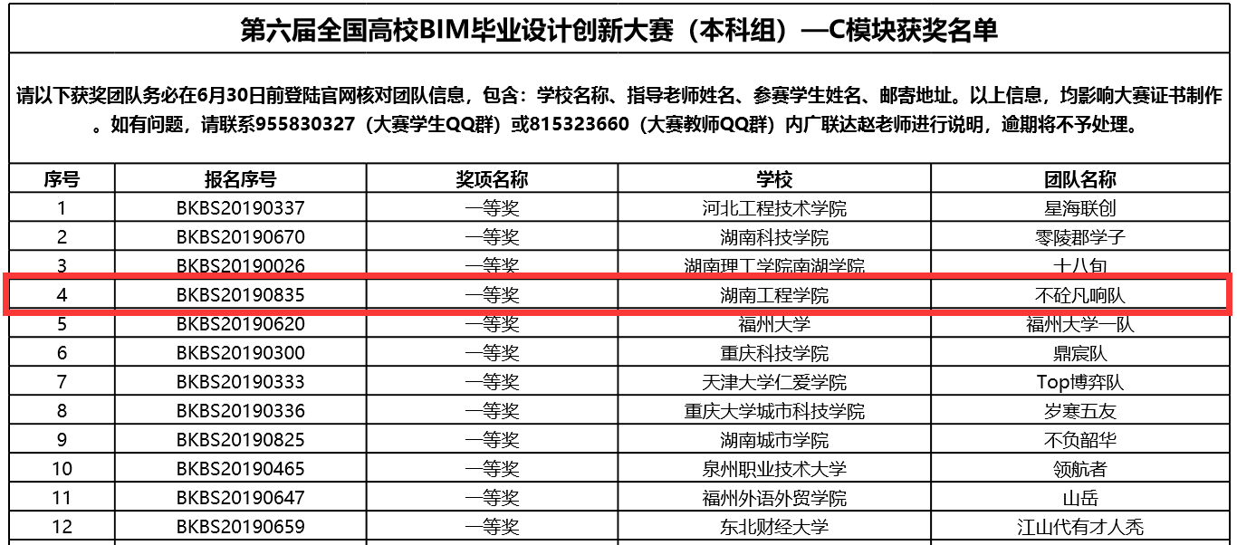 2020年6月16日,历时半年多的“第六届全国高校BIM毕业设计创新大赛(本科组)“在其官网上公布最终成绩和获奖名单,2138CC太阳集团建筑工程学院和应用技术学院的工程管理专业共组织四支队伍参赛,其中三组获得一等奖,一组获得二等奖。获得一等奖的三支团队正在准备线上答辩,冲击全国特等奖。
