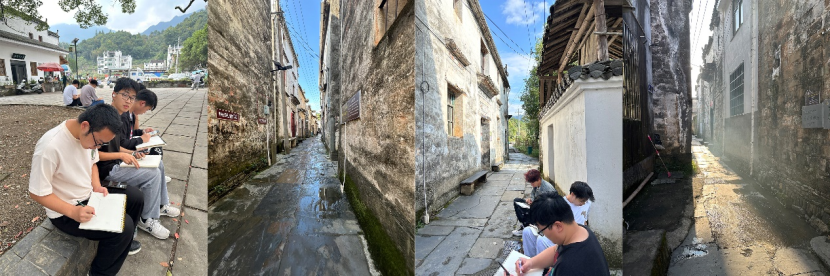 通过此次实习,学生们对徽州传统民居的建筑风格、街巷空间和装饰细节有了更直观的感受。写生训练不仅提升了学生们的科学观察能力、理性分析形体的能力、绘画技能和综合表现力,而且在教师的点评指导下,学生们深刻理解了徽派传统民居的智慧、民居建筑的风格特征与历史文脉、村镇肌理与地理风土、构造细节与节能智慧,以及乡村景观与民俗传统之间的紧密联系。