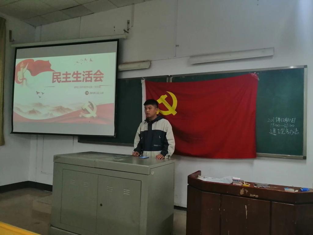 2019年12月10日晚七点,建筑工程学院学生党支部民主生活会在红楼107(一支部)、108(二支部)顺利召开。本次会议主要围绕“不忘初心、牢记使命”这一主题而展开,结合党的十九大精神进行贯彻学习。
